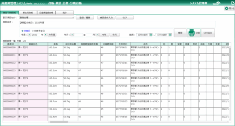 日産婦学会様の周産期登録フォーマットと同様に入力・確認が行えます。